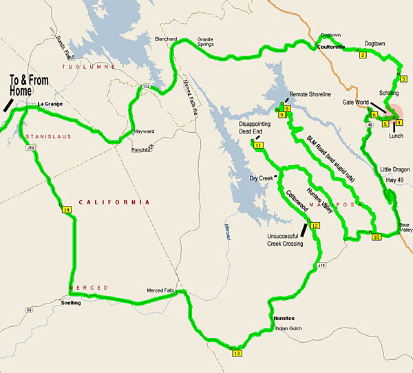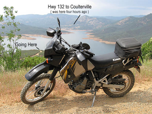 With a new rear tire, a new DS helmet and lightly loaded with junk I thought I might need, I hit the road late in the morning. I started out Yosemite Blvd (Hwy 132) from Modesto.