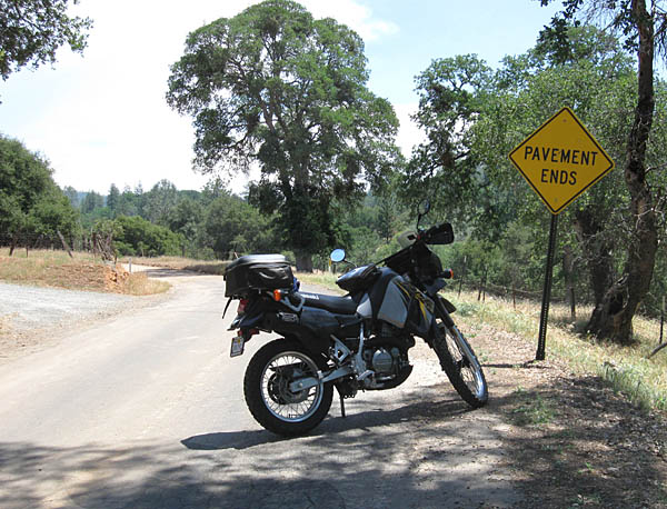 This is where I consider my new adventures to start. I headed up Dogtown Rd. I'd been up this small remote road once before on my Magna, and turned back when I ran into dirt. But not this time! When I reached the end of the pavement [PIC] [PIC] I just kept right on going (after stopping to take a few obligatory photos of course). My first real encounter with off (paved) road riding.