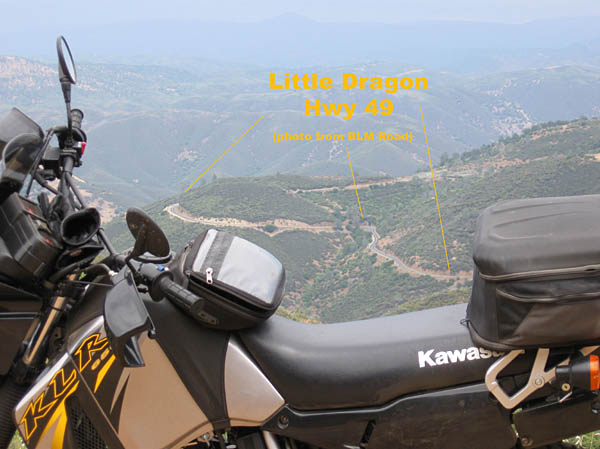 Schilling Rd. dumped me off on Hwy 49 between Coulterville and Mariposa - often called the Little Dragon. This is one of my favorite roads to ride on my street bikes. It was time to asses the KLR in some real twisties. [PIC above Bagby] [PIC southern end Hwy 49]
